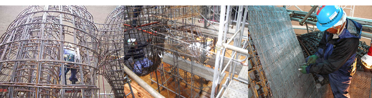 鉄筋の組立完了後、型枠用ネットを内外面の未設置部分に結束線を用いて取付けます。
