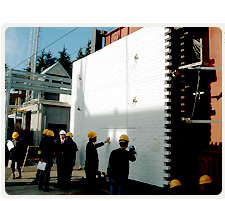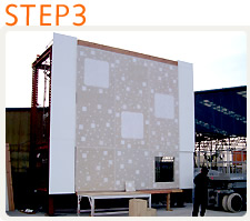 外装ファサードに求められる特性には、「耐風圧性」・「耐震性」・「耐水密性」といった基本条件の他に「長期耐久性」があります。わたくしどもは、対象ファサードの使用条件を考慮し、「熱衝撃性能評価」・「促進劣化試験」・「繰返し載荷試験」などの性能評価を、その評価方法も含め提案し、実施いたします。 (写真:「ルイ・ヴィトン銀座並木通り店」外装パネルの「熱衝撃試験」) |