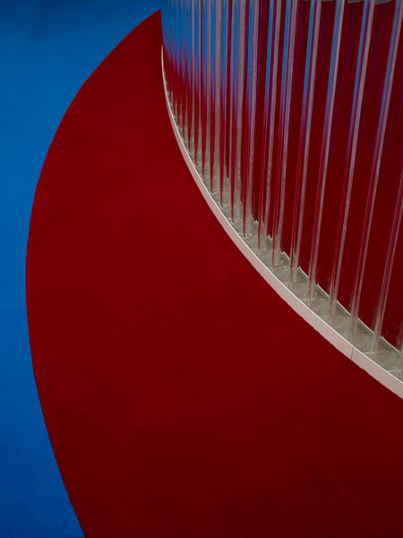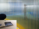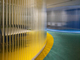 海外製特注管ガラス(φ60、t5、L2600)を約1000本使用して、水のゆらぎを表現。間仕切り壁としての機能を持ちながらも、人の気配が感じられるものとなっている。