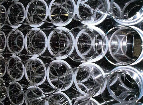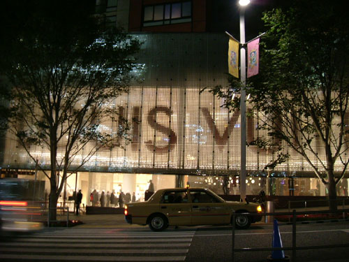 直径100mm、長さ300mmの高透過ガラスチューブを約28,000本を俵積みしたイメージデザイン。鏡面ステンレスパネルで固定されたガラスチューブは六本木の光・風景を乱反射させる。 昼間は外光を、夜間は店内光を透過させるため、ガラス管の固定支持方法の選定と、精密な精度を要求されるディテールとなるため、工場でのユニット化が重要なポイントとなった。