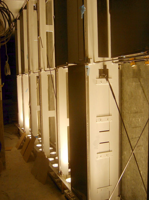 透光性天然石クリスタルストーンをサッシなどで支持せず、 フラットな面を構成出来た事と、 任意の照度コントロールが出来る内照照明システムが、 提供できたことによりESG工法が採用された。