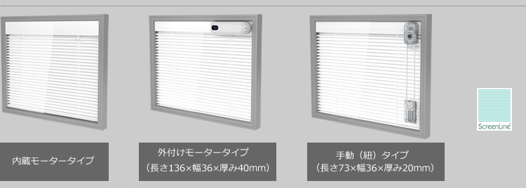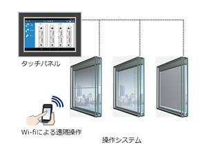 トリプルガラスに内蔵したブラインドは、角度調節はもちろんブラインドの上げ下げも自由自在です。夏の日差しが強い日はブラインドを下げ、ひと息つきたい時はブラインドを上げ景色を眺めることも可能です。 さらに内蔵モータータイプ、外付けモータータイプではタッチパネルによる操作だけでなく、タブレットとWi-fiを用いて遠くにいながらブラインドの操作を可能にします。部屋のどこにいてもエアコンを操作するように、ブラインドの操作が可能です。 |