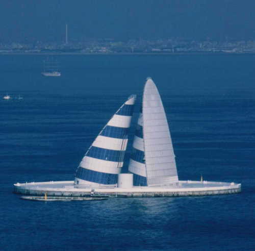 東京湾にあり、塩害、強風の劣悪な環境下では、塩害に強い、鉄筋補強ではなく、ガラス繊維補強製品である強靭・軽量はGRCが採用された。
