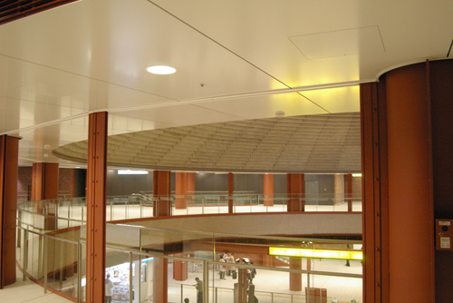 比重の重いGRCと吸音材と組み合わせることにより、高意匠で音響効果の良い空間を実現するために採用された。