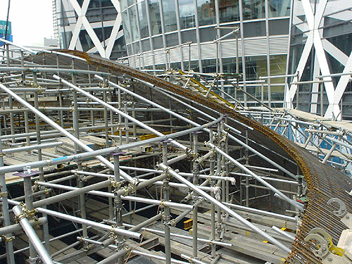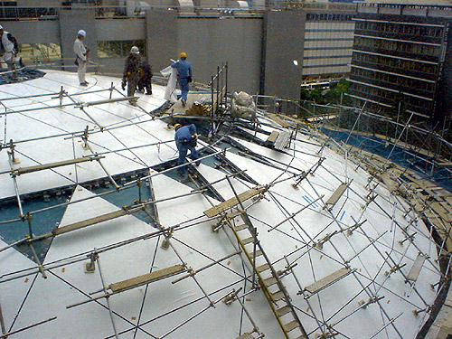 5〜6階大ホール空間をニュートラスウォールシェル構造の採用で、柱梁の無い空間を確保。