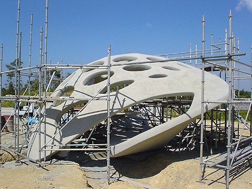 複雑な形状を高強度、高耐久性を求めてニュートラスウォール+GRCモルタルで制作。