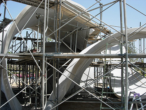 ランドスケープとしてデザインされた自由曲面形状をニュートラウォールで実現。