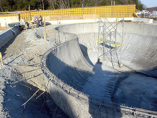 Xスポーツ用曲面バンクを鉄筋コンクリート造で構築。