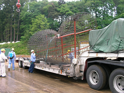加工済みの成型鉄筋トラスをトラックで運べる大きさまで組立、ユニット化します。