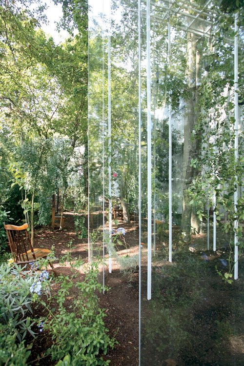 空間をつくるとこと風景をつくることを限りなくあいまいにしていくことで、これまでにない建築の可能性を考えるという設計者の意図から、限りなく薄いガラスを使用した。