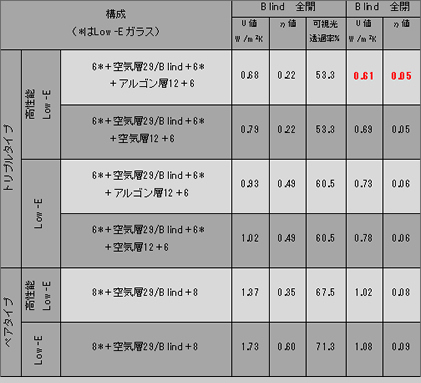 スラティアの構成例と性能値 ![]() 各値はJISに基いて算出したものです。 U値:熱貫流率(W/m2k)、η値:日射熱取得率 |