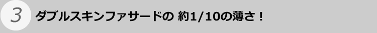ダブルスキンファサードに対し、スラティアは以下の長所があります。 (1)シングルスキンのため室内空間が広くなり、レンタブル比が高まります。 (2)ダブルスキンファサードは外気導入により、ブラインド、ガラスに汚れが (3)サッシがひとつで済むため、施工がより簡易でコストが削減できます。 (4)ブラインドに触れることがないため、折れたりよれることがありません。 |