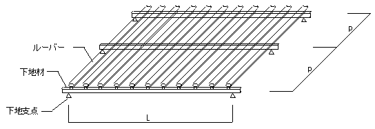 | タイプ1[低層 30.0m以下] 設計速度圧 200 kg/m2 許容応力度 アルミ 1.10 t/cm2 充実率による低減係数 0.7 鋼 2.40 t/cm2 下地材用風荷重 W=200×0.7= 140 kg/m2 |