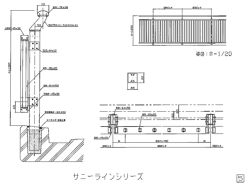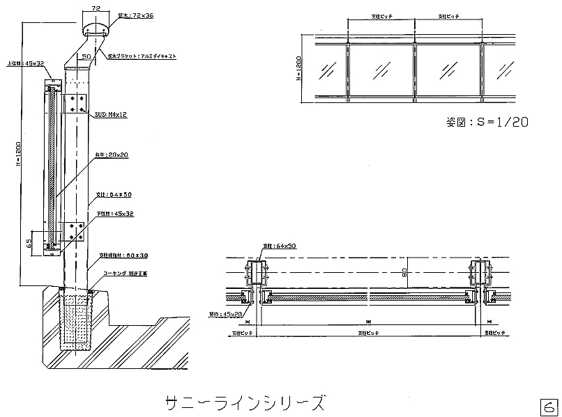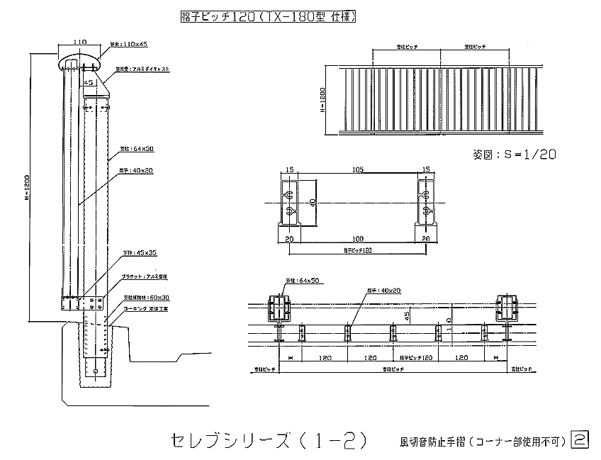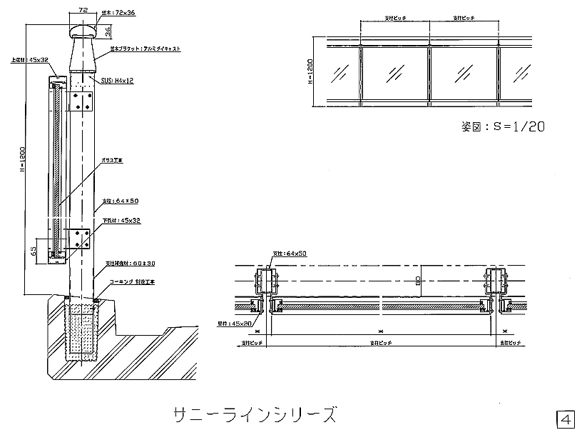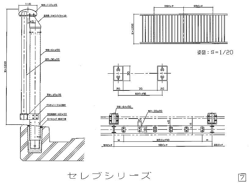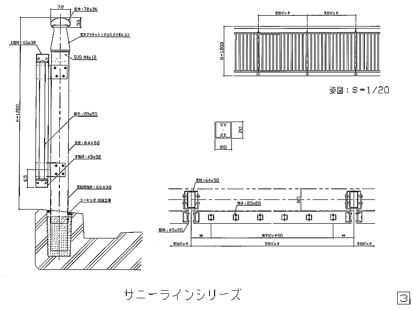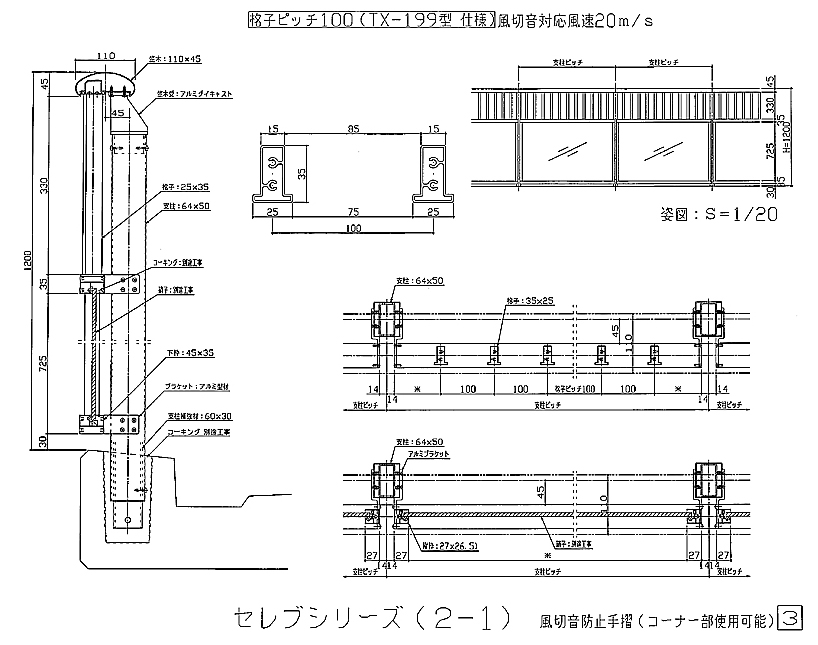 アルミ風切防止手摺図面