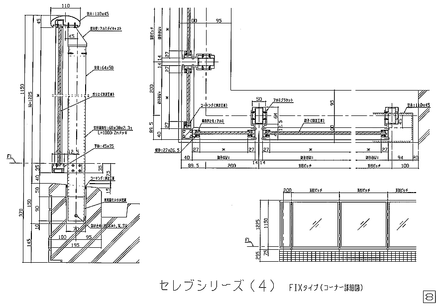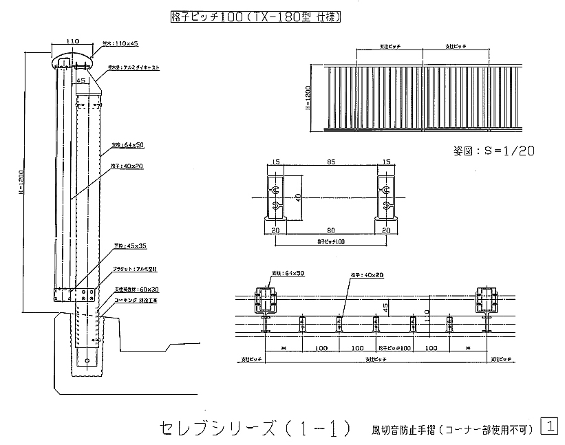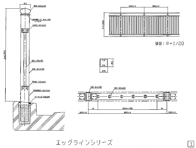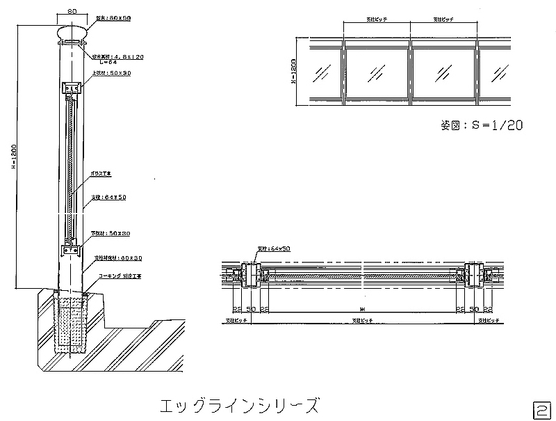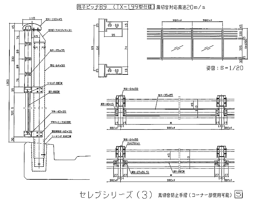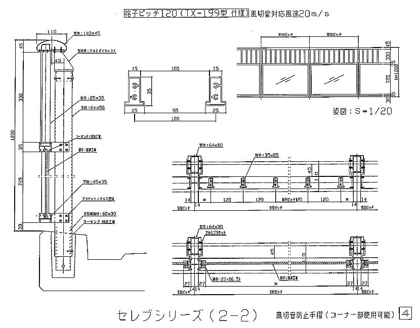 アルミ風切防止手摺図面