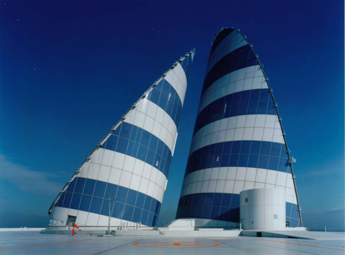 東京湾にあり、塩害、強風の劣悪な環境下では、塩害に強い、鉄筋補強ではなく、ガラス繊維補強製品である強靭・軽量はGRCが採用された。