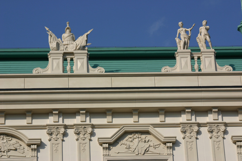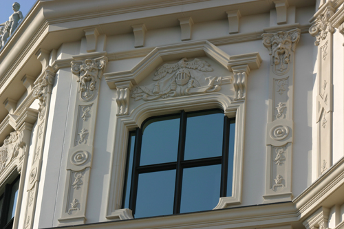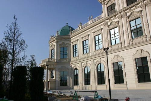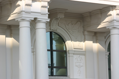 ヨーロッパの宮殿風の意匠を実現する為、軽量・強靭で意匠再現性に優れたFRPが採用された。