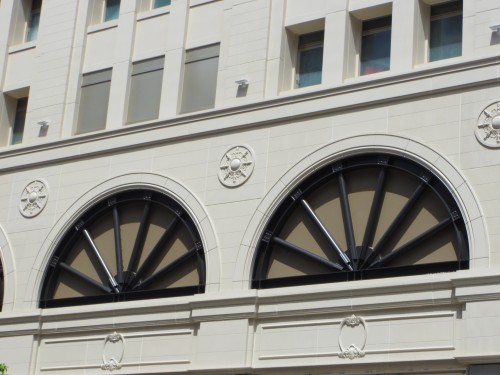 旧外観の復元に不可欠な意匠再現性、老朽化した躯体の負担を軽減するための軽量性、高強度・高耐久による安全性が評価されGRC(ガラス繊維補強セメント)が採用となった。