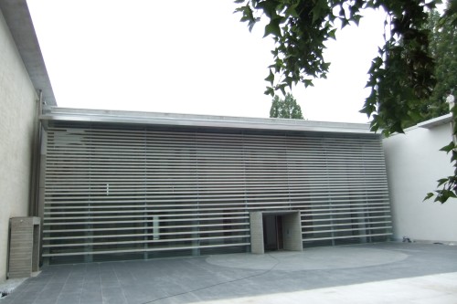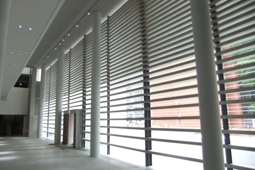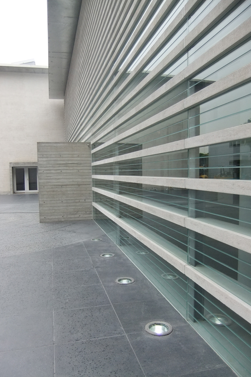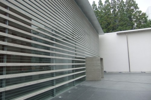 既存外壁の櫛引き仕上げ再現性と横に細長い硝子のマリオンとしての強度性能が評価され採用となった。