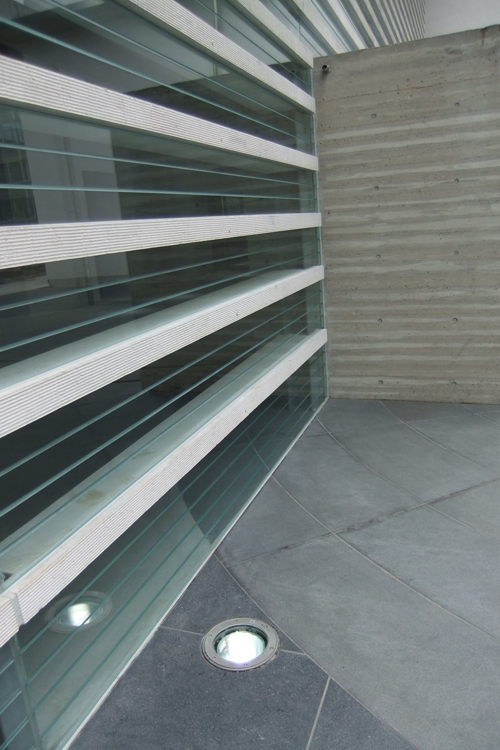GRC(耐アルカリ性ガラス繊維補強セメント板)+エッチングガラス