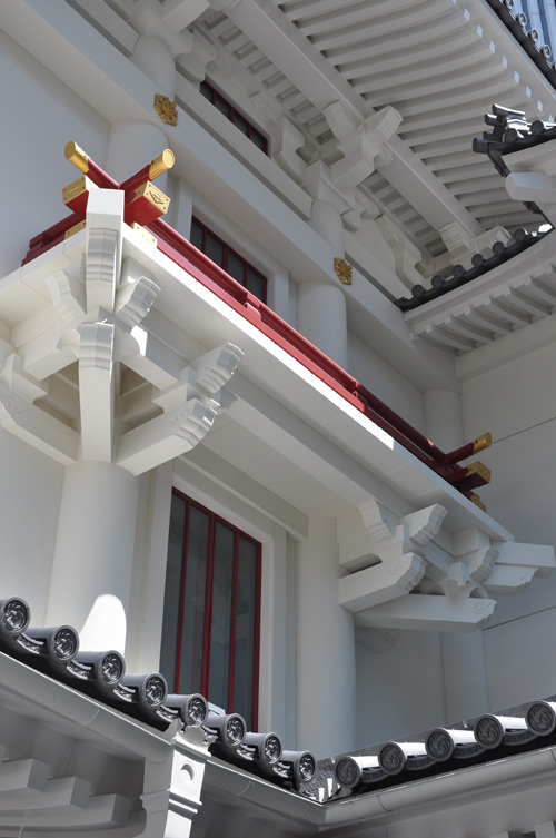 | ポイント | 設計者から与えられた命題は「耐震性能を高めつつ、木造建築のディティールに徹底的にこだわる」というものだった。 GRC(耐アルアリ性ガラス繊維補強セメント板)の特徴である意匠再現性・軽量性・不燃性・施工性を総合的に評価していただき採用に至った。 図面だけでの表現が難しい部位においては、第四期歌舞伎座を取り壊す前に、ゴム型による型取りを行った。木造のシャープさを鮮明に出すために、棟梁の手により原型に修正を加え、本来木造が持つディティールが再現されるよう工夫している。 劇場の天井パネルは、軽量性と、耐震設計の観点より、GRG(ガラス繊維補強石膏板)が採用された。 |