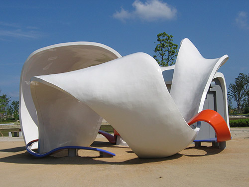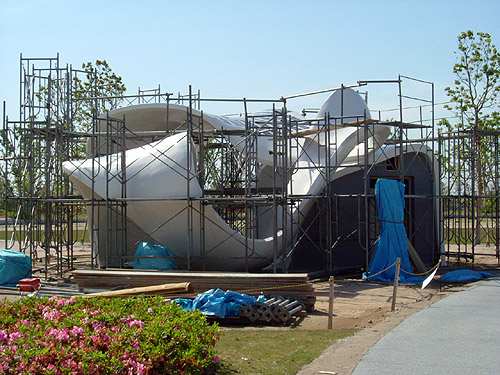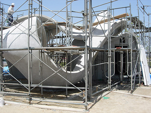 ランドスケープとしてデザインされた自由曲面形状をニュートラウォールで実現。