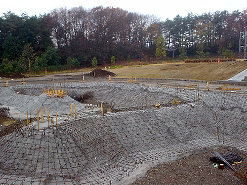 Xスポーツ用曲面バンクを鉄筋コンクリート造で構築。