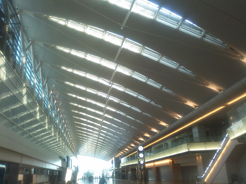 吸音パネルを専用金具とワイヤーにより二重の落下防止対策を行っている。